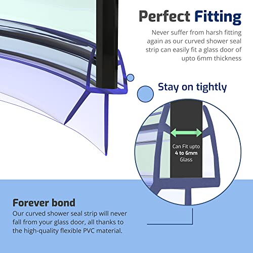Pre Curved Shower Door Seal Strip for 4-6mm Glass – 90cm Long Pre...