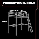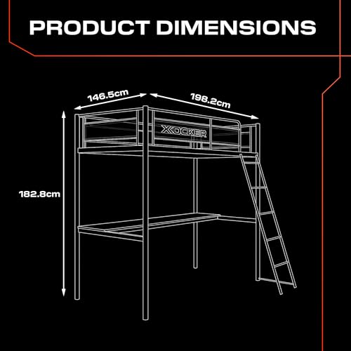 X-Rocker HQ Bunk Bed with Desk, Metal High Sleeper Loft Bed with Desk, Gaming Bed with Fixed Ladder, Single 3ft for Kids and Teens, Space Saving Design with Single Mattress Included - BLACK