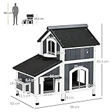 PawHut Wooden Cat House Outdoor with Flower Pot, 2 Tiers Cat Shelter with Window, Multiple Entrances, Water-resistant Roof, Grey