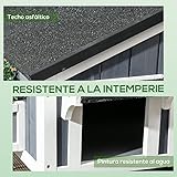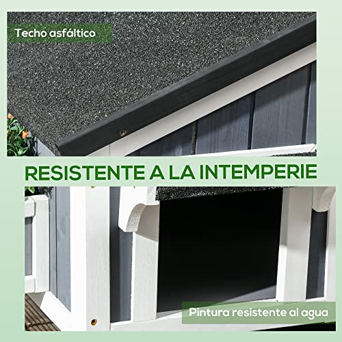 PawHut Wooden Outdoor Cat House with Flower Pot, Windows, Multiple Entrances, Water-Resistant Roof - Grey