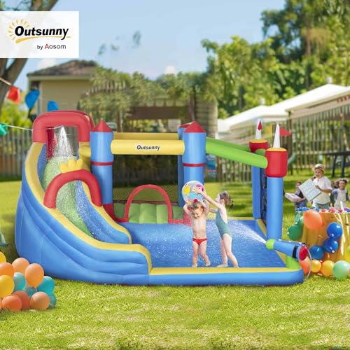 Outsunny Kids Inflatable Bouncy Castle 6 in 1 Water Slide Water Gun