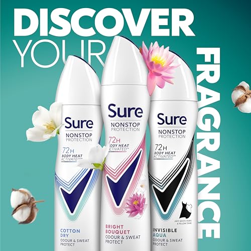 Sure Women Nonstop Protection Bright Bouquet Deodorant Antiperspirant with a strawberry and vanilla scent & body heat activated technology for 72 hour sweat protection 250 ml, Pack of 6