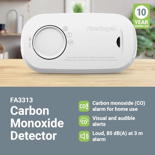 FireAngel Carbon Monoxide Alarm and Detector - FA3313 10-Year Sensor Life CO Alarm for Home with 1-Year Replaceable Batteries - Travel, Portable Carbon Monoxide Detector - CO Detector Monitor - White