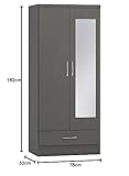 Seconique Nevada Mirrored 2 Door 1 Drawer Wardrobe in Dark Grey Dark Grey