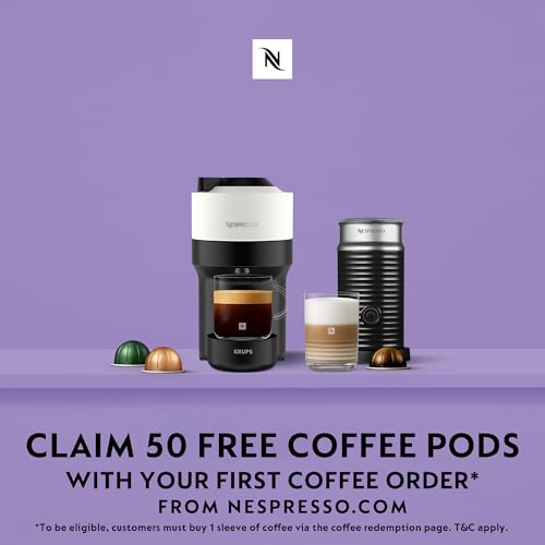 Nespresso Vertuo Pop Automatic Pod coffee machine for Americano, Decaf, Espresso by Krups in Coconut White