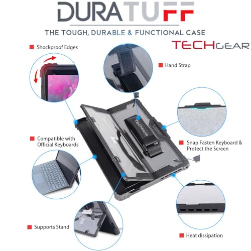 TECHGEAR DuraTUFF Case for Microsoft Surface Pro 4 5 6 7 7+ [Signature Keyboard Compatible] Tough Rugged HEAVY DUTY Armour Shockproof Case with Hand Strap, Shoulder Strap, Stand Cover & Pen Holder
