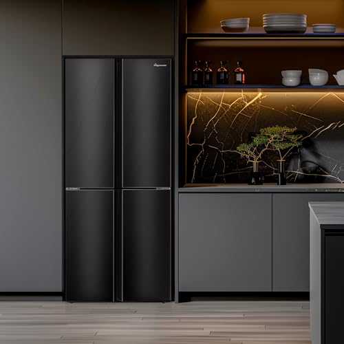 Fridgemaster MQ79394EB Freestanding American 4 Door Fridge Freezer 427L, Total No Frost, Inverter compressor, Black, 64.3D x 79.4W x 181.6H cm, E Rated