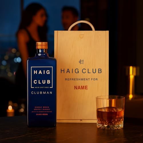 Haig Club Clubman Personalised Single Grain Scotch Whisky Gift Set 70cl 40% ABV in Wooden Presentation Box – Luxury Whisky Gift for Men Women Birthday UK