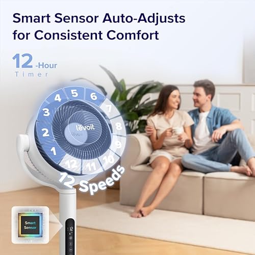 Levoit 20dB Quiet Pedestal Fans for Bedroom, 1451CFM Powerful Air Circulator Fan with Remote, 90°+120° Oscillating, 12 Speeds, 4 Modes, 12H Timer, Adjustable Height, Standing Fan for Home Office