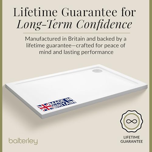 Balterley 1200 x 800 mm Rectangular Shower Tray, Slimline Shower Trays, Durable Stone Resin Base Trays for Bathroom Enclosure Cubicle, Central Waste Rectangular Tray for Wetroom Showers (White)
