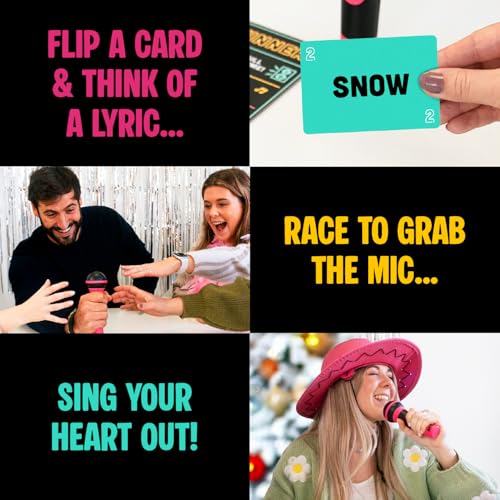 Lucky Egg Official Grab the Mic – Family Karaoke Game, 8+ Year Olds, 2-10 Players - Board Game for Bad Singers with 250 Lyrics (125 Cards) for Hilarious Nights & Birthday Party, Kids Gift