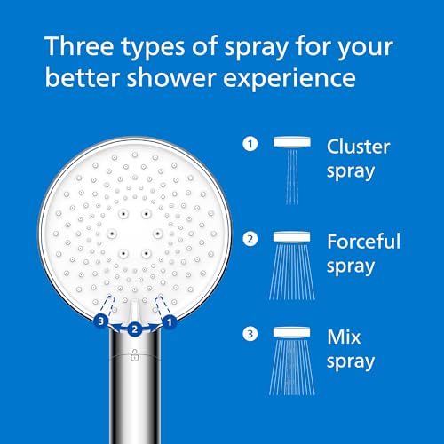 Philips Showerhead with Filter Effectively removes Chlorine and Other coarse Particles, Three Spray Modes, Pressure-Enhancing Design, 1-Month Filtration Capacity