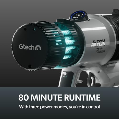 Gtech AirFOX Platinum, Cordless Stick Vacuum Cleaner, 37V Li-Ion Battery with 80 Minute Runtime, 450W Brushless Motor, 2-in-1 Upright & Handheld, LCD Display Panel, White