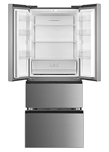 Cookology CFDF391IX 70cm Freestanding French Doors Fridge Freezer, 391 Litre Capacity with LCD Temperature Control, 4 Star Freezer and Frost Free - In Inox