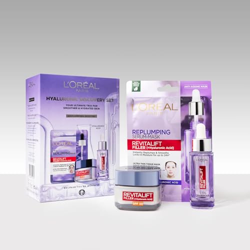 L'Oréal Paris Hyaluronic Discovery Set Gift Set - Revitalift Filler 1.5% Hyaluronic Acid Serum, Day cream and Replumping Tissue Mask
