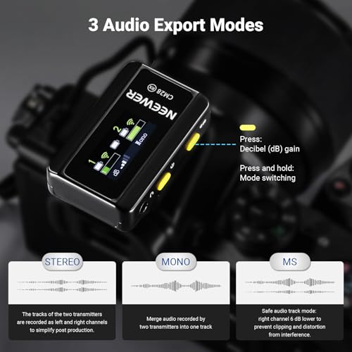 NEEWER CM28 (1 RX + 2 TX + Charging Case), Wireless Lavalier Microphone, Smart Noise Cancelling, 48KHz/16Bit 9 Hrs Uncompressed Recording, 656ft/200m Range, Lav Mic for iPhone, Android, Camera