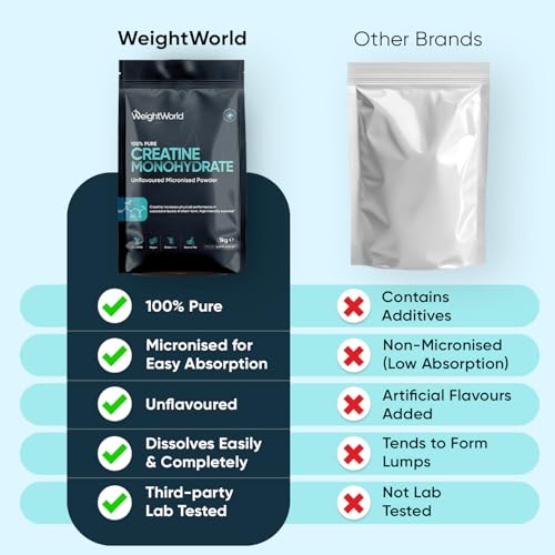 WeightWorld Creatine Monohydrate Powder 1kg - 330 Servings - Pure Micronised & Vegan