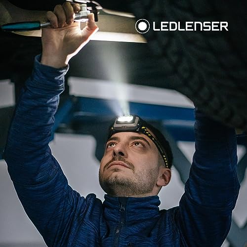 Ledlenser HF4R Work Rechargeable 500 Lumen Head Torch - 80 CRI, Focusable spot to flood Light, Waterproof, Front Red Light and Helmet Mounting Option, Bright, Versatile Headlamp for Work and Adventure