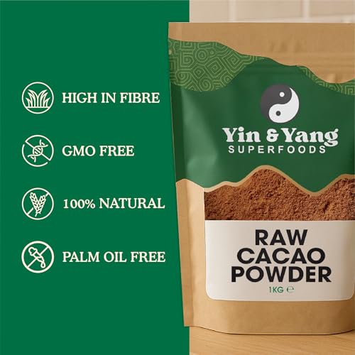 Cacao Powder 1kg, by Yin & Yang Superfoods. Pure and Raw, 100% Natural, High in Fibre and Protein, GMO and Palm Oil Free - Ethically Sourced