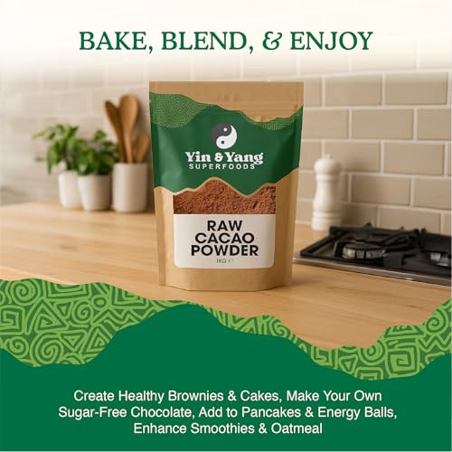 Cacao Powder 1kg, by Yin & Yang Superfoods. Pure and Raw, 1.00 kg (Pack of 1)