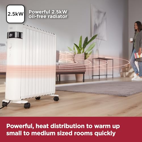 BLACK+DECKER 2.5KW Smart Digital Oil Free Radiator, 3 Heat Settings, Adjustable Thermostat, 24 Hour Timer, White, BXRA43017GB