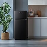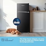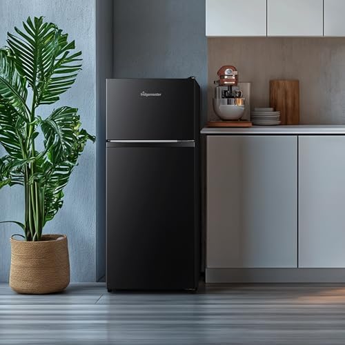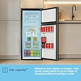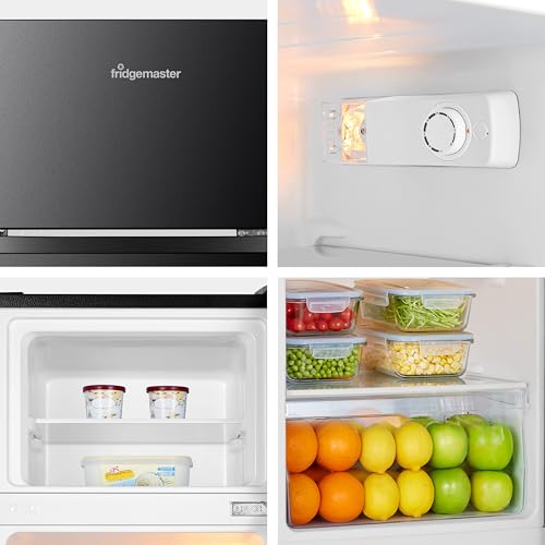 Fridgemaster MTM48120EB 48cm Freestanding Top Mounted Fridge Freezer - 124-Litre Capacity with Adjustable Thermostat - Reversible Door - LED Lighting - 4 Star Freezer Rating - White - E Rated