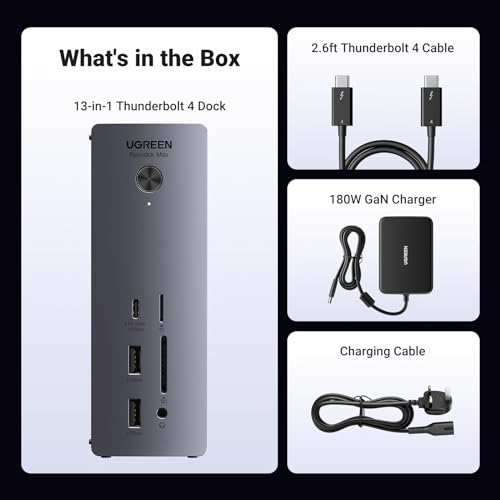 UGREEN Revodok Max 213 Thunderbolt 4 Dock, 13-in-1, Single 8K or Dual 4K@60Hz Display, 90W Charging, 3x 40Gbps Thunderbolt 4, 5x USB-A and USB-C, 2.5GbE, SD/TF 4.0, Compatible for Mac and Windows PC
