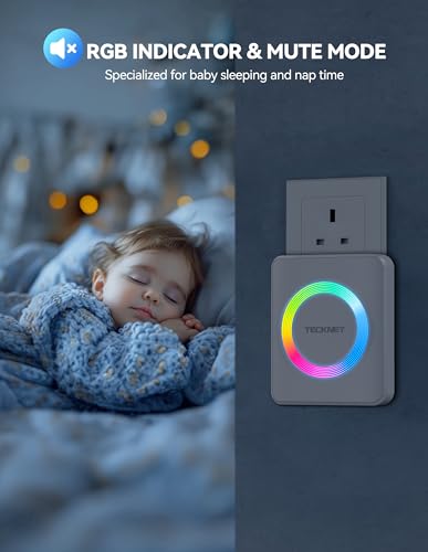 TECKNET Wireless Doorbell 3 Receivers, Door Chime Kit with RGB Light, White