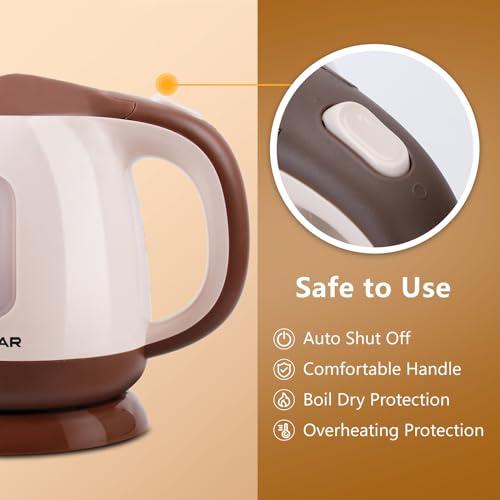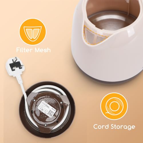 Aigostar Small Electric Kettle, 1 Litre 1100W Low Wattage Cordless Kettle for Travel Bedroom Camping Office, Lightweight Portable Kettle Electric, White and Brown - Romeo