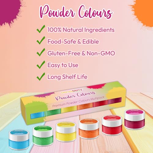 Edible Powder Colours Multipack (6 x 3.5g Jar) - Natural Food Grade Colouring Powders for Cooking, Baking, Icing and Cake Decorating - High Strength Food Colouring Dust for Vibrant Results (Rainbow)