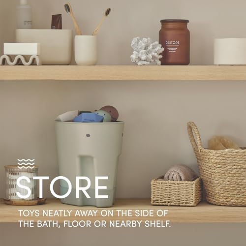Shnuggle Ellie Bath Toy Storage Scoop & Organiser | Baby & Toddler Bath Toy Drying Caddy with Drip Tray | Made from 98% Recycled Plastic | Dries Better Than a Bath Toy Net