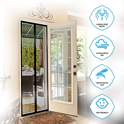 RnCop Magnetic Screen Door fits Door up to 90 ×210cm, Heavy Duty Fly Screen Door Mesh Screen Curtain - Self Sealing, Hands Free, Frame Hook & Loop-Black
