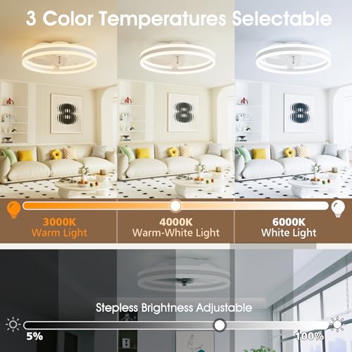 NIORSUN 50cm Ceiling Fans with Lights and Remote, 6 Speeds and 3000K-6500K Dimmable Quiet Ceiling Fan Light, Smart Modern LED Fan Lights Ceiling for Bedroom Living Room Dining Room (White)