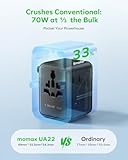 MOMAX Universal Travel Adapter,70W GaN Travel Plug Adapter with UK/EU/AU/US Plugs, 2AC, 3USB-C PD & 2USB-A QC International Adapter Charger, Adapter Plug for Laptops Tablets Phones
