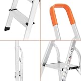 Novecrafto Small Step Ladder 2 step, Compact Aluminium Foldable Step Ladders with Safety Handrail in Silver Silver