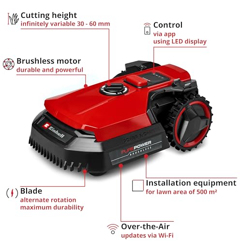 Einhell Robot Lawnmower 18V, Long-Life Battery, App Control, IPX5 Water Resistant, Over-The-Air Updates Via Wi-Fi, Robot Lawn Mower Kit Suitable For Garden up to 500 m², FREELEXO 500