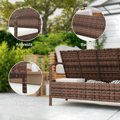 OUTSUNNY Rattan Garden Bench w/ 125L Storage, Cushioned Outdoor Bench, Brown Brown