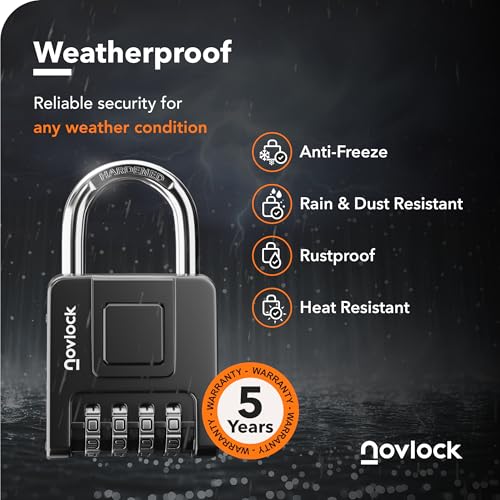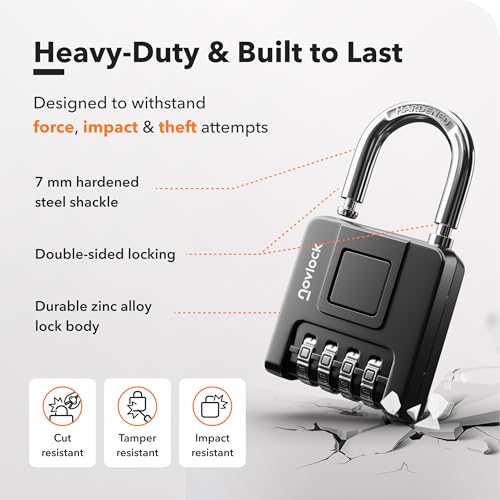 NOVLOCK Combination Padlock for Outdoor & Indoor – 2.76" (7cm) Long Shackle – Weatherproof, Heavy-Duty – Gates, Fences, Sheds, Lockers, Storage, Cabinets – 1-Pack, Black