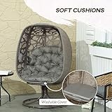 Outsunny Swivel Egg Chair with Cushions, Foldable Basket Seat and Metal Frame, Indoor Outdoor Lounge Chair for Balcony, Poolside, Patio and Living Room, Sand Brown