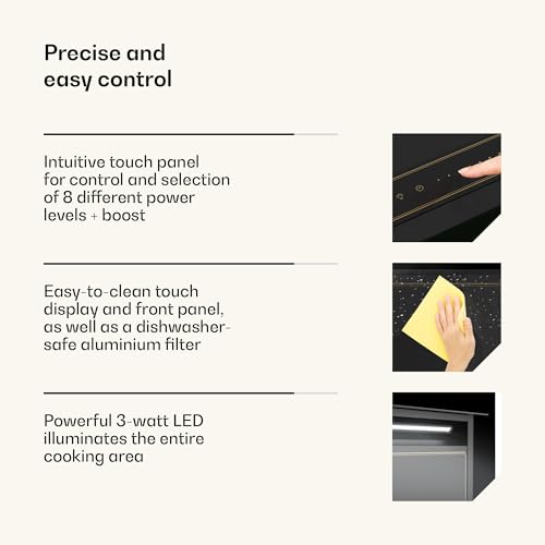 Klarstein Victoria Downdraft Cooker Hood - A++ Energy Efficient, 720 m³/h Air Flow, Quiet 52 dB, Touchscreen Control, Dishwasher-Safe Filters, LED Lighting, Black