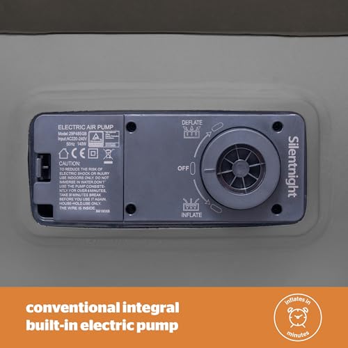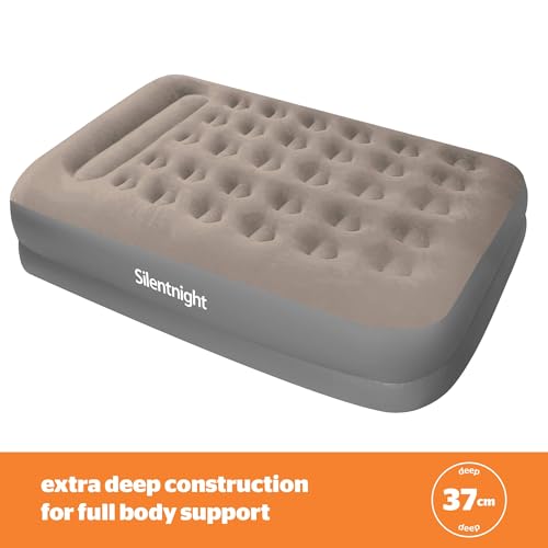 Silentnight Air Bed Double with Built in Pump - High Rise Flocked Non Slip Electric Airbed Comfortable Full Body Support Air Mattress for Guests, Camping, Caravans - Grey - Double
