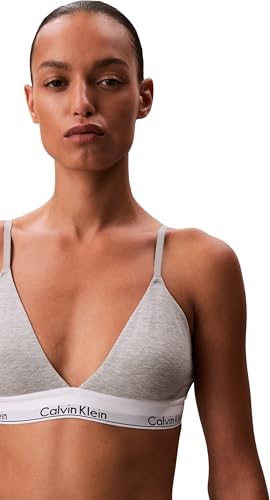 Calvin Klein Women’s Lightly Lined Triangle Bra with Logo Band, Grey (Grey Heather), M