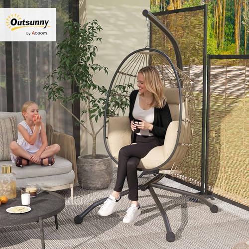 OUTSUNNY Egg Chair Outdoor Indoor Garden Swing Chair, Folding Basket, Khaki Khaki