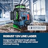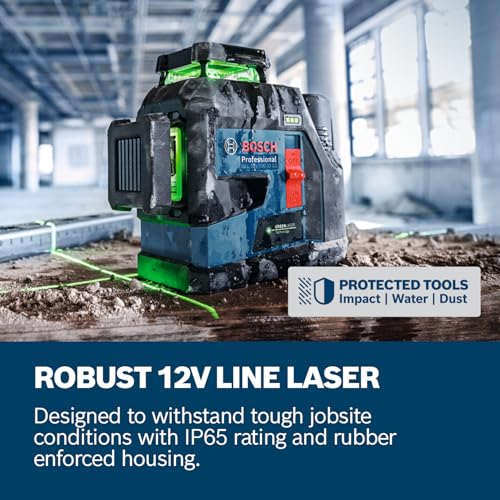 Bosch Professional line Laser GLL 12V-100-33 CG (3 x 360° Green Laser, Working Range 100 m (Radius) with Receiver, IP 65, Levelling Remote App, LB 10, DK 20, GBA 12V 2.0Ah, GAL 12V-40, Pouch, L-Boxx)