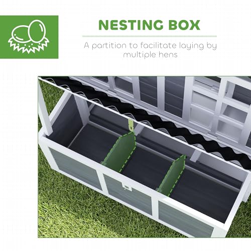 PawHut Wooden Chicken Coop with Nesting Box, Hen House Poultry Cage with Slide-Out Tray, Waterproof Roof, Perches, for 4-6 Chickens, 100 x 86 x 100cm