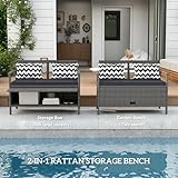 Outsunny 2 Seater Garden Storage Bench with 160L Capacity, PE Rattan Garden Bench with Storage, Wicker Outdoor Bench Loveseat with Cushion, Pillows and Steel Frame for Patio, Grey
