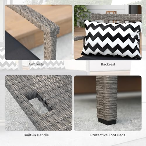 OUTSUNNY 160L Rattan Garden Storage Bench, Cushioned Outdoor Bench, Grey Grey