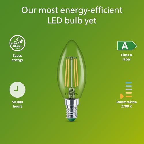Philips Classic Ultra-efficient LED Bulb with Energy Efficiency Class A, E14 Base, Replaces 40W, Clear, Warm White Light, Candle Shape, Pack of 3