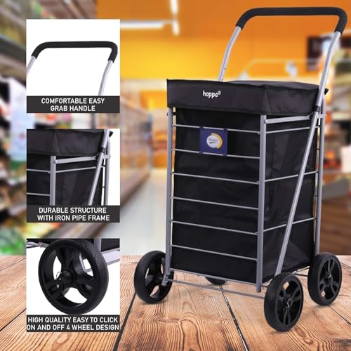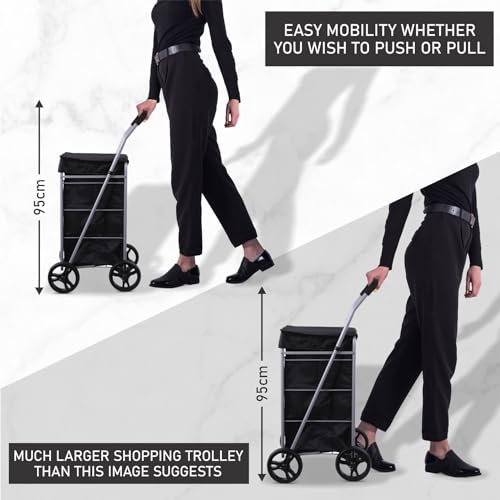 Hoppa Lightweight 4-Wheel Premium 2024 Model Folding Shopping Trolley Extra Large 75.6L Capacity Shopping Trolley Bag, 95cm, 4.8kg, Push/Pull (Black)
