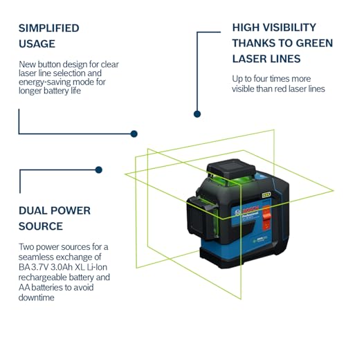 Bosch Professional line Laser GLL 80-33 G (Bracket LB 10, Green Laser, Working Range: up to 30m, Dual Power Source, 4x1.5V LR6 Batteries, Protective Bag)